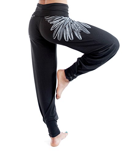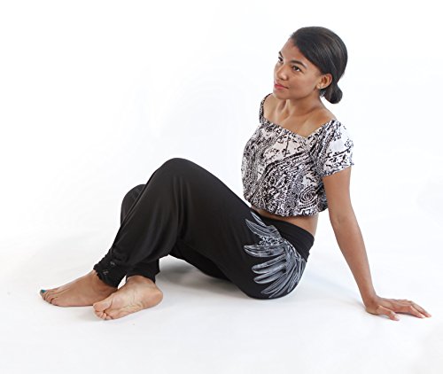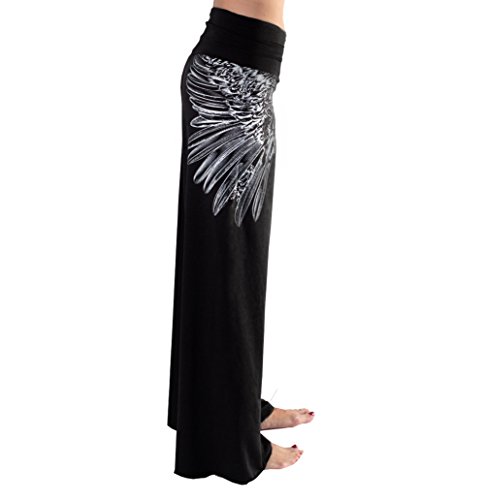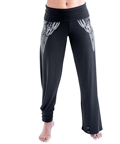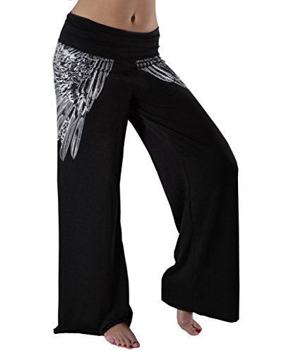-. Feature : Very comfortable, high waist fold over pants, high quality fabric, made in USA. Type: fabric high comfort soft rayon spandex pajama lounge cozy stretch silky palazzo high waist pants. Perfect loungewear. / Mix with sport style parts: top, hoody, sweater, cap, boots, sneakers. / Occasion: gym, run, workout, outdoor and indoor yoga, fitness, energy exercises. Casual: perfect for beach style, pajama party, walk, playing with kids, have fun, happy hours, sleep. / 3 different P.R.Ints and colors: Charcoal with P.R.Inted Wings, Black with grey spots, Navy Tie Dye / Design: high waistband wear in two ways: rise entirely or fold in half, palazzo fashion style, loose and comfort.