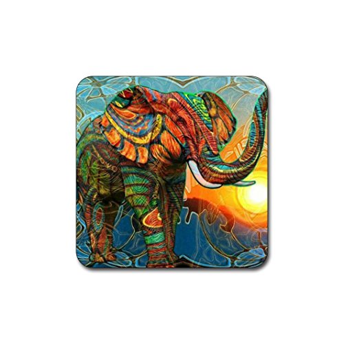 -. Title : Elephant pattern square coaster set - Made of recycled rubber - set of 4