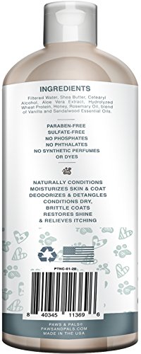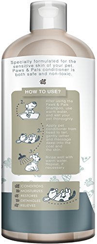Studio : Paws Pals Publisher : Paws Pals Binding : Misc. Product Description Paws Pals's 100% All Natural Pet Wash Conditioner, Specially formulated for the dry, sensitive, skin and coat of your dog. All Natural Cleansing and Moisturizing for You and Your Family's Best Friend. 100% Natural Oils for deep cleansing and moisturizing of your dog's coat and skin. Vegan Ingredients, Nontoxic and safe for your dog and your family. Tearless soap free formula makes for a hassle free painless bath time. Brings restored shine and health to your dog's matted or worn coat. Paraben Free, and of course Cruelty Free. 20 Oz. bottle made with certified recycled materials. Proudly Made in the U.S.A. 0