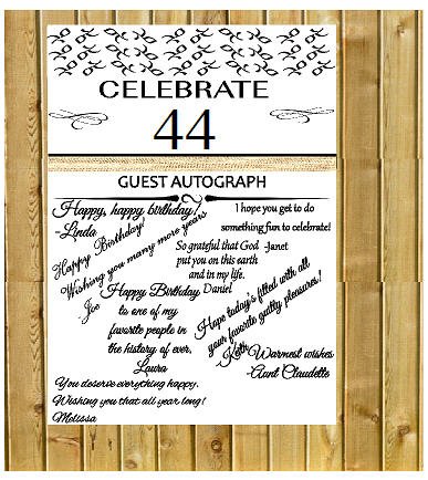 (CakeSupplyShop)/Stationery Party Supplies/Party Supplies/DIRECT FROM USA/44th Birthday / Anniversary Novelty Burlap Guest Sign-In Autograph Party Decoration Wall Poster