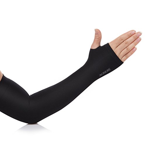 AoMagic Cycling UV Protection,Sun Protection,Arm Sleeve Finger Hole for Women and Men Outdoor Sports,Driving,Hiking Black