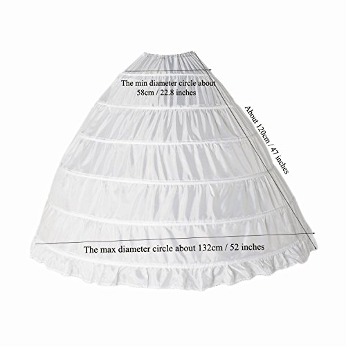 ZJchao 6-hoop Hoops Petticoat White Bridal Crinoline Petticoats Slips Underskirt
