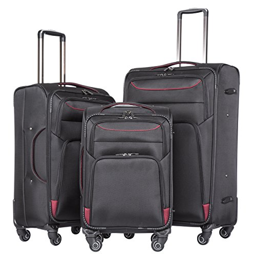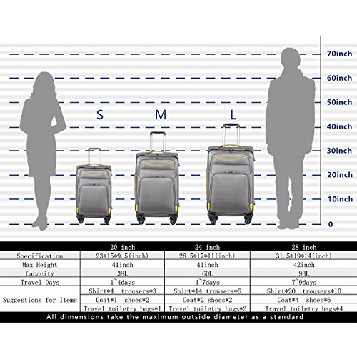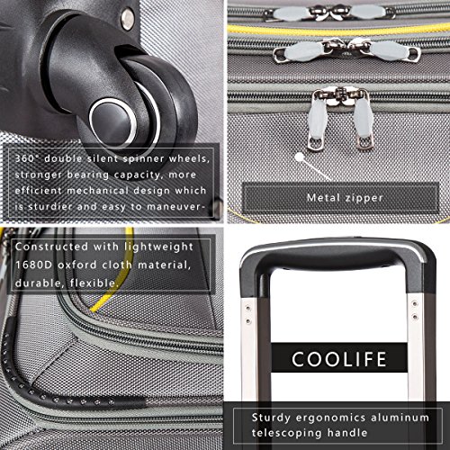 Product Description Coolife luggage set - We wish you a pleasant experience with your new suitcase from Coolife®! Designed to provide travelers comfort, functionality, reliability, and peace of mind, this 3 piece suitcase set features one 28inch suitcase for consignment, one 24inch suitcase for checking in and one 20inch suitcase suitable for carrying onto the plane. Constructed with lightweight 1680D oxford cloth material, this luggage is durable, flexible and can absorb impact when under stress. Quiet airplane spinner wheels and an adjustable 3-level telescoping handle allow you to quickly maneuver in tight spaces and provide effortless movement. Make packing clothes easy with the interior fully lined with multi-use organizational pockets.