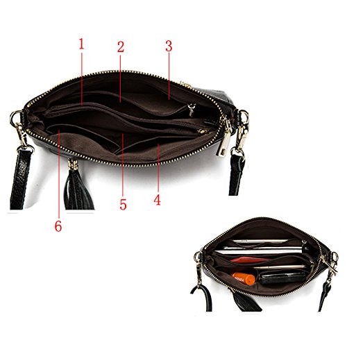 STRUCTURE: one zipper closure main pocket, the pocket of both side are functional pocket and the front one decorated with tassel and cover, you can put card or cellphone in these pockets; 2 interior slips, 2 interior zip closure pockets and 2 open pockets inside; this bag can give you plenty of room for daily items needed and keep everything in its place with this organizer