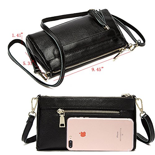 STRAP: long adjustable & removable shoulder strap with 24" drop and one removable wristlet, convenient & comfortable to wear in 3 way: shoulder, cross-body and clutch