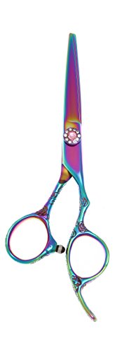 ShearsDirect 5.5" Cutting Shear In Rainbow Titanium And Flower Engraving Handle, 3 Ounce
