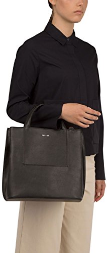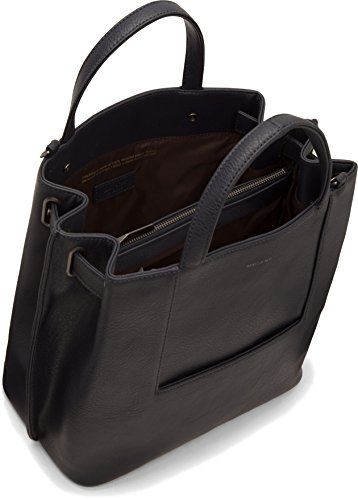 Satchel with adjustable and removable crossbody strap. Compression straps with tabs. Front slit pocket. Three interior compartments, center one with top zipper closure. INTERIOR: smartphone pocket, logo-embossed Dwell tag. 100% recycled nylon lining.Feature
