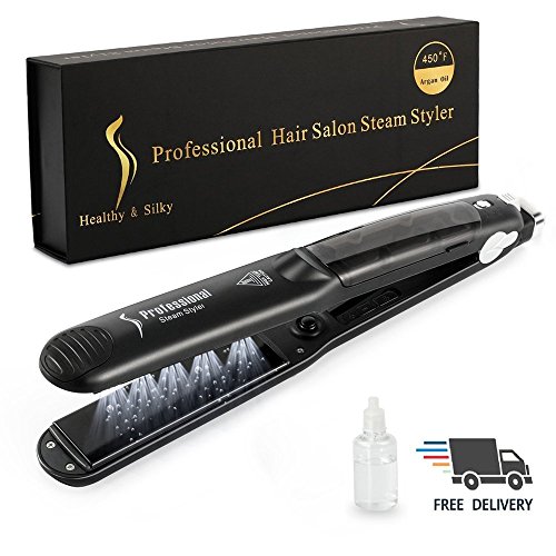 - 【Keep Moisture】This Steam Hair Straightener locks your hair's natural moisture under high temperature, it will release safe steam when you style your hair. Using with Professional Thermal Protector Spray, steam straightening are more effective, making your hair shiny and silk smooth.