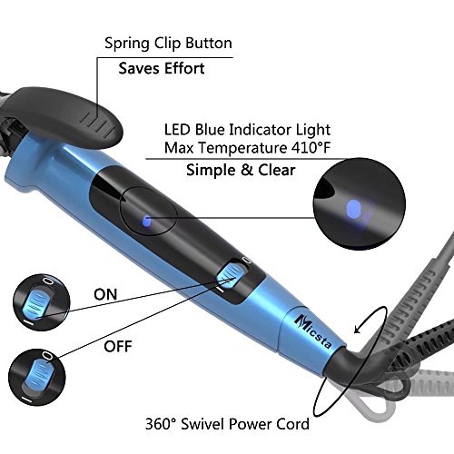 - SAFEST HEATING TOOL:From the premium insulated cooling tip,the built-in safety stainless steel support,to the high-end heat resistant glove and mat,with this Micsta curling iron,you will never have a single burning finger!