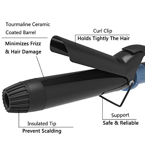 - HEALTHY HAIR CURLER:Professional curling wand features ceramic ionic tech that emits negative ions,protects hair from heat damage while adding shine,and the tourmaline coated helps to seal moisture into your hair and reduce frizz.