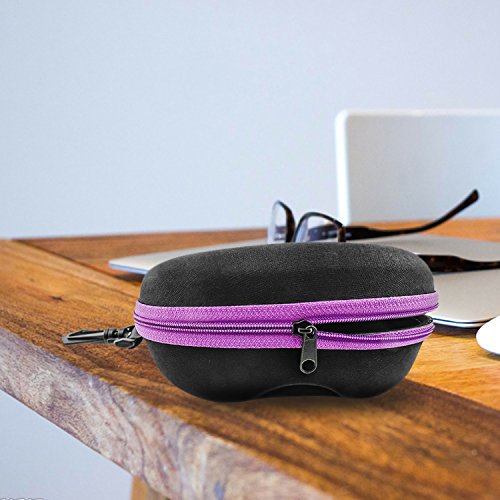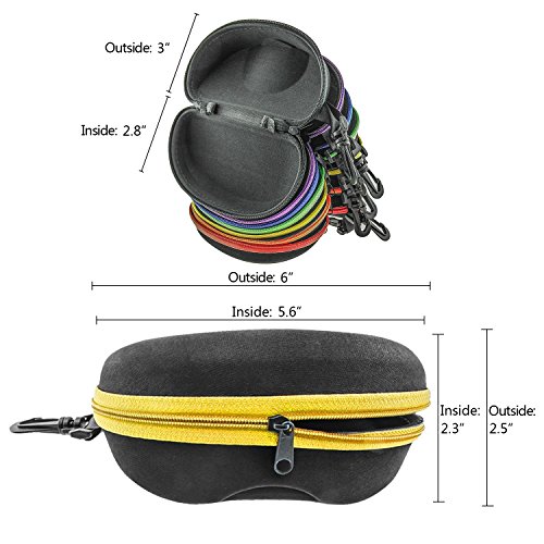 Product Description Hard shell sunglasses case provides crush-proof protection for your sunglasses or glasses when you're not wearing them. It has a keychain hook which you could attach the case to your backpack when you are travelling.
