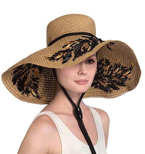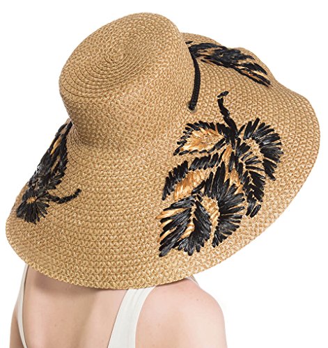 Binding : Apparel Product Description Dramatic sun hat of Squishee? with hand embroidered leaf motif of synthetic raffia. Rope chin strap secures the hat when it's windy and also allows it to hang down your back. Signature logo rivet is discretely placed at the back. Lightweight and packable. Blocks 95% UVA/UVB rays. Independent testing in accordance with AATCC (American Association of Textile Chemists and Colorists) test methods have determined this product's effectiveness for blocking ultraviolet radiation as well as UVA/UVB radiation. This product was awarded the highest rating of 50 UPF by independent testing. To learn more about AATCC testing, go to www.aatcc.org. Due to the weave of this item, tiny pinhole areas may provide less than 50 UPF. 0