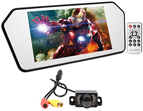 -. Feature : 7" Rear View Mirror Monitor with Bluetooth, USB, SD, Built In Speaker, and Remote. 7" High Resolution TFT LCD Color Monitor. Real glass mirror! (Most others on the market do not have a real mirror). Easy Clip-on Installation over existing mirror. LED Digital Panel with 800 x 480 high resolution display (Most similar items on the market have TFT display with 480 x 234 resolution this one is 100 times better!!!). / Built in Bluetooth for hands free phone calls. Built in USB slot supports high definition video playback. Built in SD card reader supports high definition video playback. Built in speaker. Plays back MP5 files! 2 A/V input. 1 A/V output. Camera input for parking safely with automatic reverse trigger (Camera will display automatically on screen as soon as you go into reverse). 16:9 true wide screen display. / Automatic Reverse Trigger. Multi-Function Remote Control. Touch Button Controls. Special Anti-Glare Glass. Brightness: 500 Nits . PAL / NTSC System Auto Switching. Power Supply: DC 12V / 8W. English on screen display menu. New nicer design is super slim and looks way better than the older designs. / Small and Compact. Low Power Consumption. Low Maintenance-Install. Easy Installation. Weather Resistant. High sensitivity. Night Vision. Auto Reverse Image Capable-Shows normal view on screen. 170° Viewing Angle. Hard plastic waterproof casing allows long lasting use. / The Rockville R7CB is a product we are really excited about. We took our hottest selling rearview mirror monitor (the RRM704) and asked ourselves how can we make this better? Our team thought of a bunch of great ideas and brought them to life! The all new R7CB is a 7" rearview mirror monitor that has the following advantages over other competing products on the market.