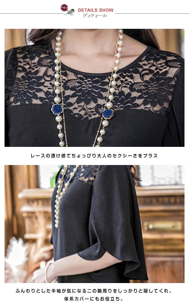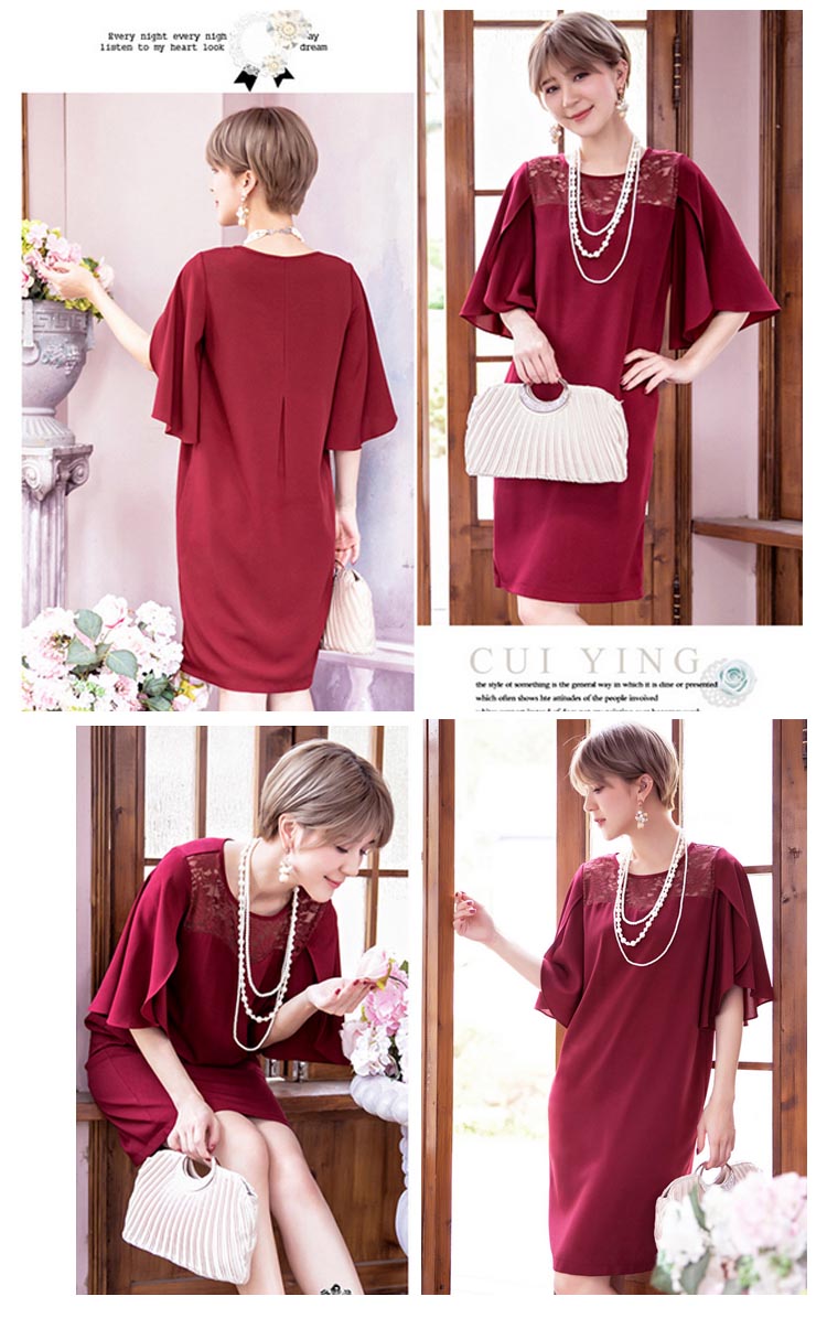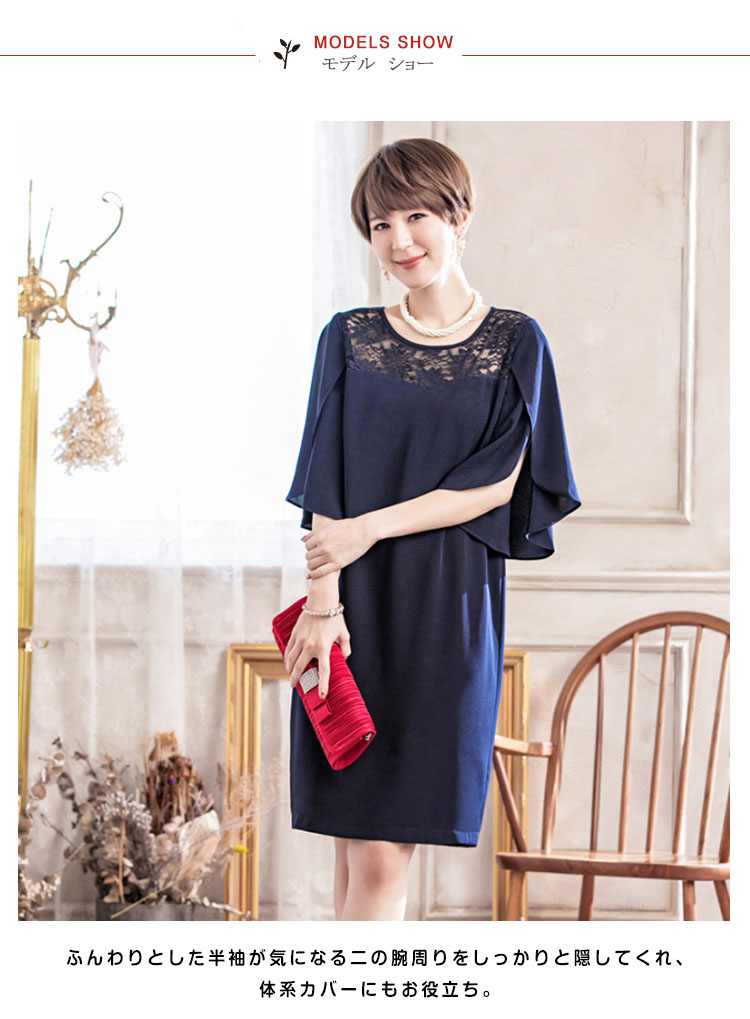 | レースの透け感でちょっぴり大人のセクシーさをプラスした最旬パーティードレス。ふんわりとした半袖が気になる二の腕周りをしっかりと隠してくれ、体系カバーにもお役立ち。全体的にはシンプルなので、どんな小物とも合わせやすくおすすめの一枚です。ジャケットやボレロが羽織れるデザインなので温度調節がしやすい商品です。ちょっとしたお出掛けや通勤やパーティーなど、特別な日の一着として重宝しそう☆ | |