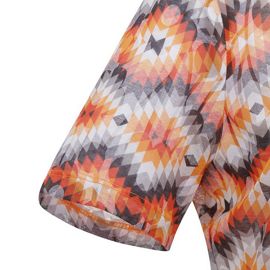 - 컬러풀한 플라워 프린트로 화사한 여성 티셔츠.