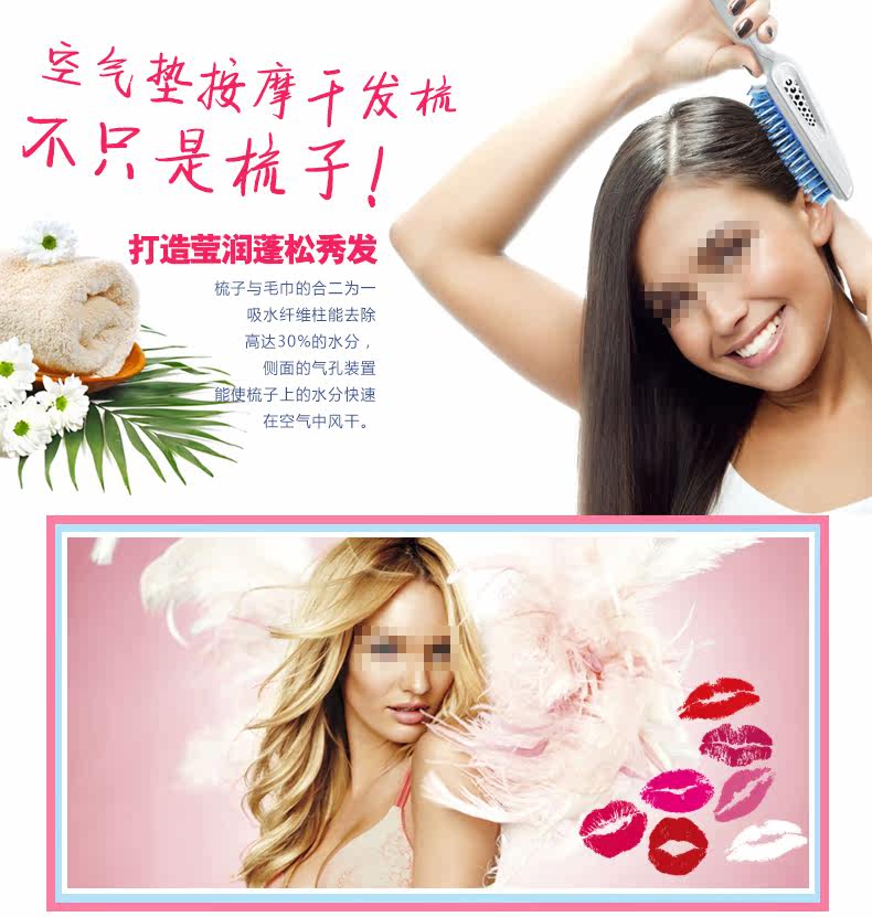 邦维丝干发梳干发毛巾空气垫梳按摩梳防静电海绵吸水快速快干梳