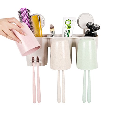 Wall mounted toothbrush holder with 3 mugs (11L6.3W4.53H 2mugs)