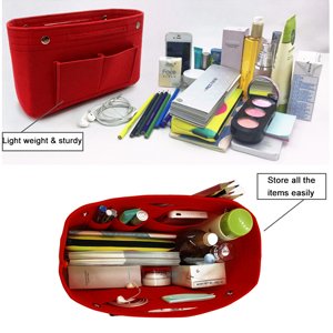 Product DescriptionMaterial: Felt Fabric Dimensions: (L)11.02" * (H)7.08" * (W)4.13" Structured oragnizer bag keep your items easy find and well organized The felt fabric bag keeps its shaped and protecting your items. Easier to change bags. It can be foldabled when not in use, save space. Package included: 1 x Organizer bag0
