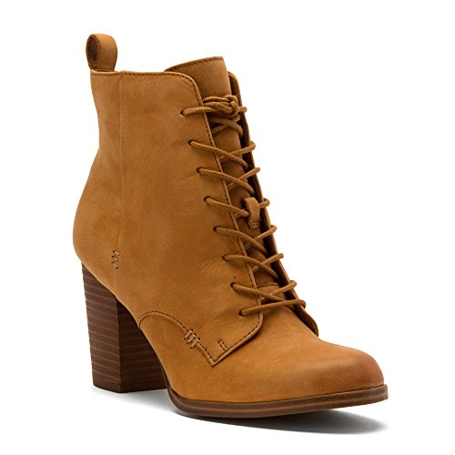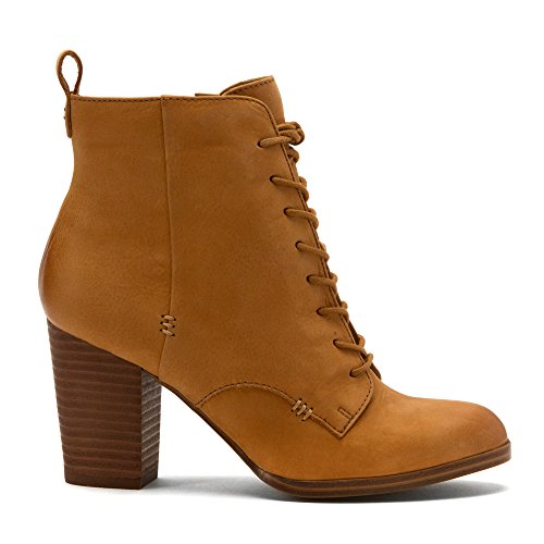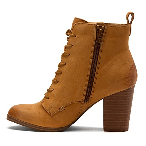 -. Feature : Block-heel bootie featuring lace-up front with blind eyelets / Pull-on loop at opening / Side zip closure