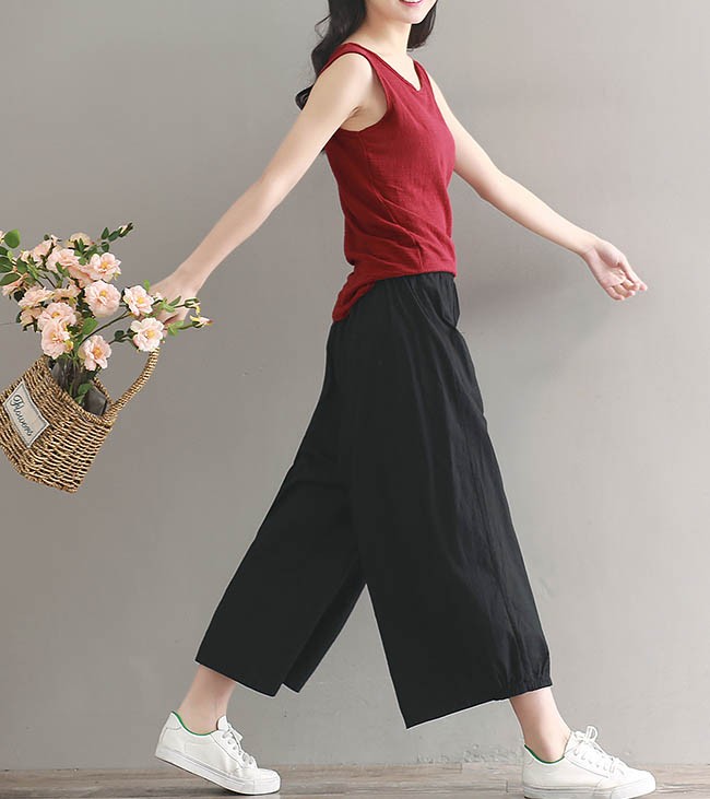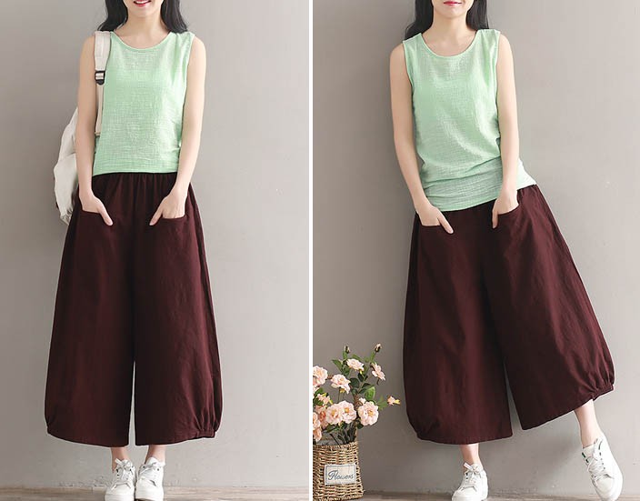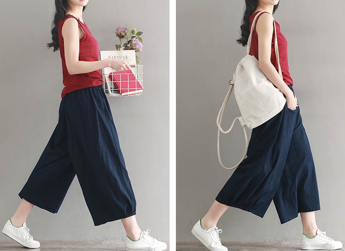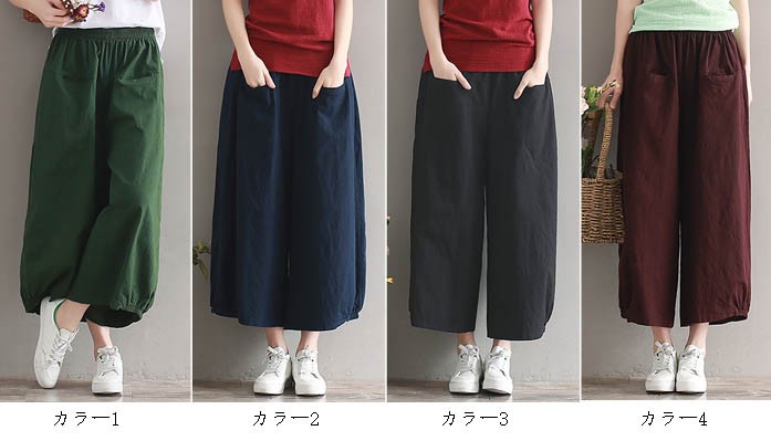 【入荷後営業日2,3日以内出荷予定 通関待ちや不良により出荷遅くなる場合はメールにてご連絡いたします。メール受信設定によっては正常に受信されない場合はございますので、 弊社からのメールを予め受信頂くようご設定くださいませ。】 ボトムス パンツ 無地 ガウチョ ウエストゴム入り コットンリネン 麻綿混紡 レディス レディース 春 新作 2018ウエストゴム麻綿混紡無地ガウチョパンツ◆サイズ:着丈70ウエスト65-80◆素材:コットン85%+リネン15%