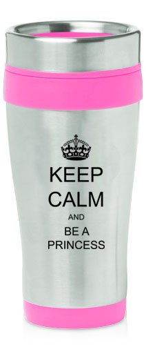 -. Title : Hot Pink 16oz Insulated Stainless Steel Travel Mug Z238 Keep Calm and Be A Princess Crown