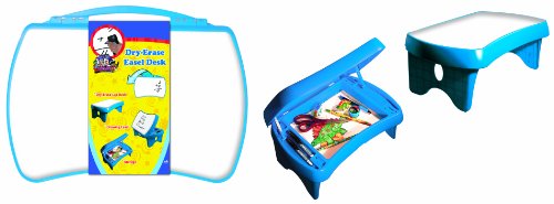 Great for kids of all ages. Dry erase lap desk. Lift the lid of the desk to reveal a storage area for dry erase markers or anything else you can imagine. Has fold out legs for stability or can be left folded flat for use in tight spaces. Convenient carry handle for easy transportation. A must for travel to keep children entertained.Feature