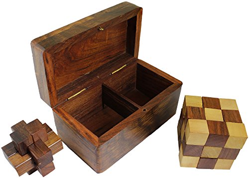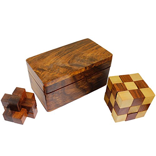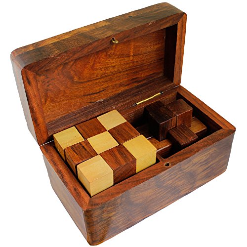-. Binding : Toy -. Brand : RoyaltyLane -. Color : brown -. Edition : First -. Feature : Lot of 25 - 2-IN-1 GAME Snake cube and bar lock jigsaw puzzle for all age group / PERFECTLY SIZE Measures 4.8 x 2.6 x 2.3 Inches and weight - 5 Kg / GENUINE INDIAN WOOD HANDICRAFT Game set is handmade in India out of the finest sheesham hardwood / GREAT GIFT IDEA Kids and adults will love getting this game for birthdays and other occasions / ARTISAN CRAFTED Handmade by skilled Indian woodworkers; Much finer quality than sold in stores -. Genre : Educational -. IsAdultProduct : 0 -. Label : RoyaltyLane -. Manufacturer : RoyaltyLane -. MPN : RLP-wooden_puzzle_006_25 -. PartNumber : RLP-wooden_puzzle_006_25 -. ProductGroup : Toy -. ProductTypeName : TOYS_AND_GAMES -. Publisher : RoyaltyLane -. Size : Medium -. Studio : RoyaltyLane -. Title : Set of 25 - Snake Cube 2-In-1 and Lock Jigsaw Puzzle Box - 3D Wooden Game Brain Teaser Puzzle - 4.8" x 2.6" x 2.3"