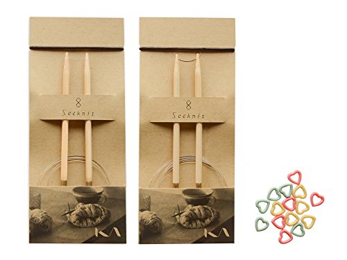 KA Seeknit, Bamboo Shirotake Circular Knitting Needles Set of 2 with Stitch Markers, 24 Inch (60cm) and 32 Inch (80cm) US8 5.00mm