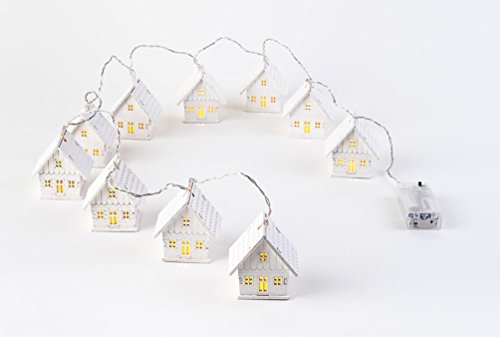 Christmas Tree Holiday Garland 10 Miniature Houses with Lights, 4" tall