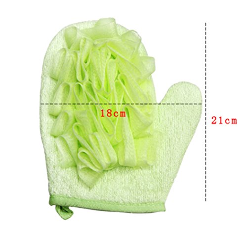 Double-sided design and double material: The shower glove is on both sides and made from natural bamboo fiber and PE. First to rub skin with smooth surface, then use the other side with shower gel or soap gently to produce rich foam, finally rinse your body.