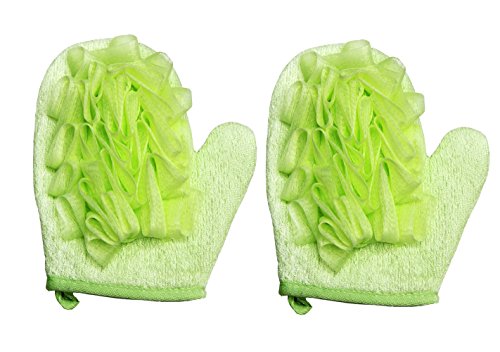 Yunko Double Side Durable Bamboo Fiber Scrubbing Shower Gloves Bath Gloves Deep Exfoliating Natural Bath Sponge Loofah Pouf