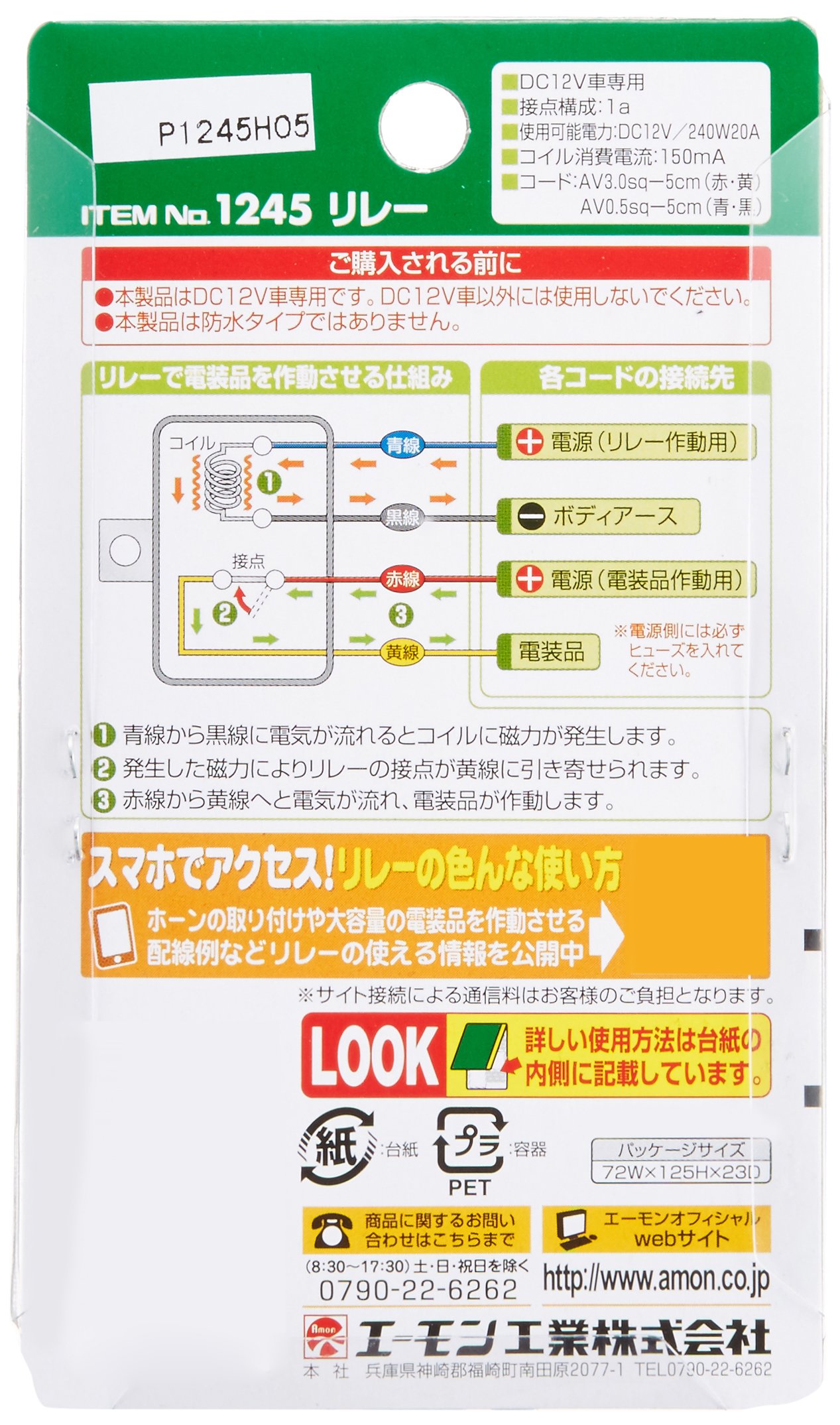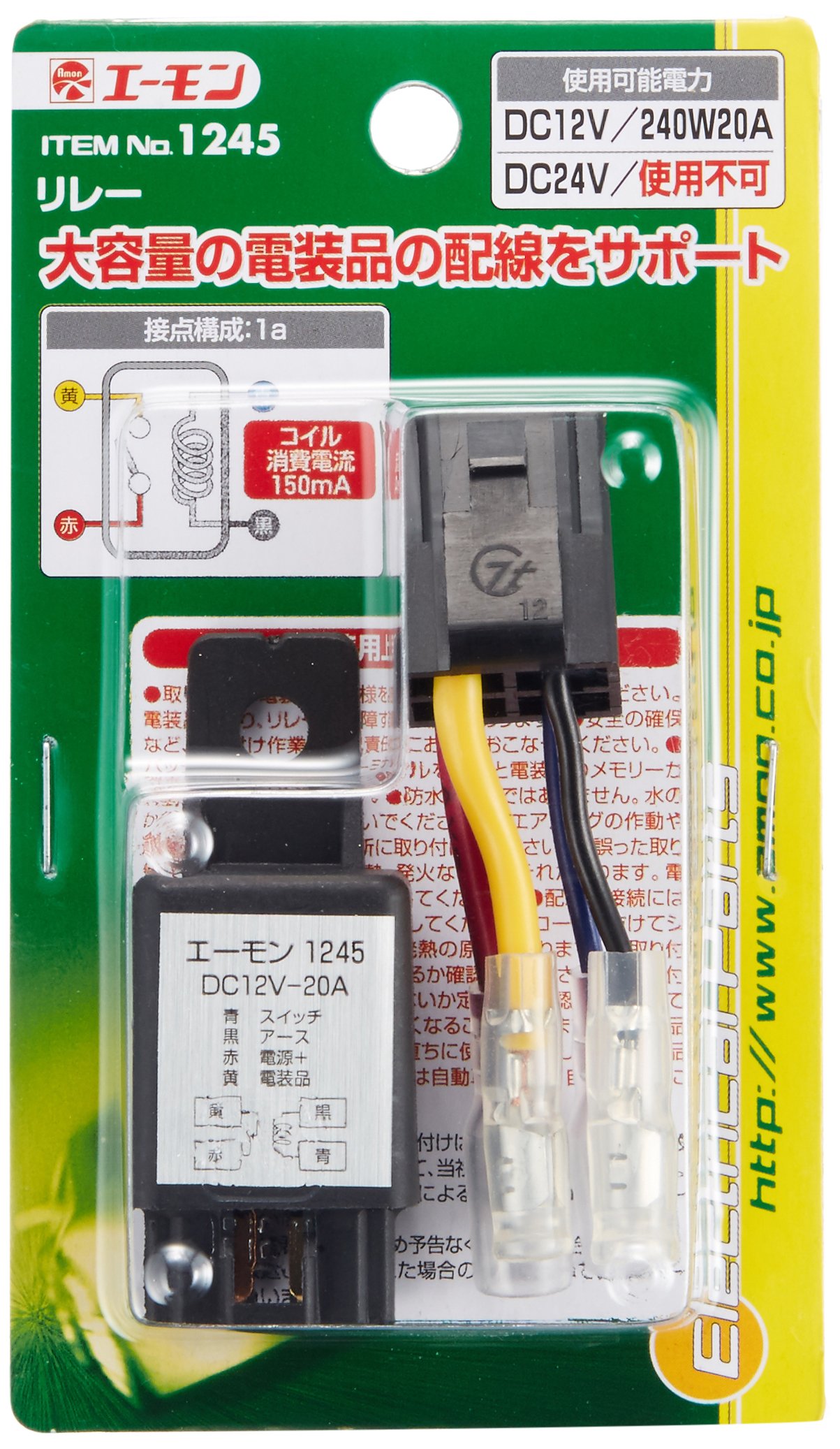 Amon 1245 relay 4-pole ・ DC12V vehicles only ・ 20A