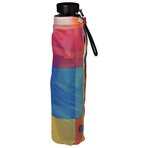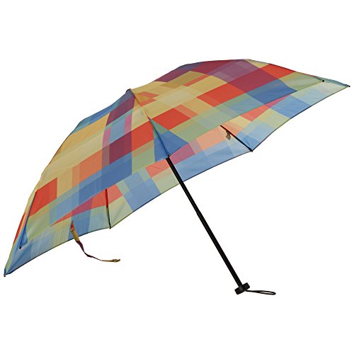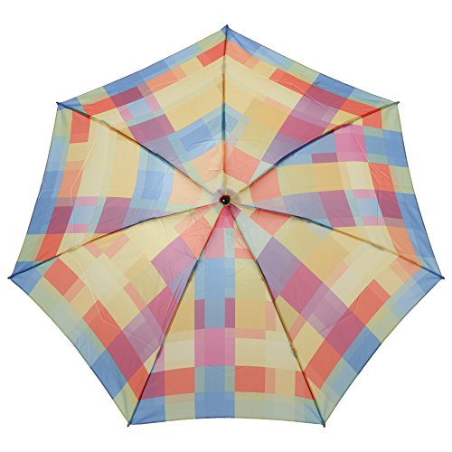 -. Title : アスティ 婦人用オーガンジーミニ折傘 ジャイアントピクセル柄 50cm×7R ブルー/イエロー 25180B65