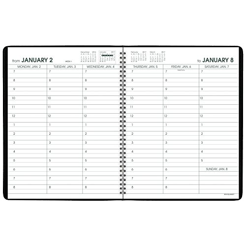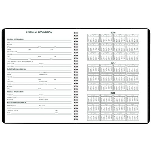 -. Feature : Past, current and 2 future months calendar blocks also shown for quick date reference / Quality paper contains at least 30% post-consumer recycled material. 8.25 in. x 10.88 in. page size. 8 13 / 16 in. x 11 6 / 16 in. x .56 in. overall size. Appointment book is wirebound, durable and lightweight with a black cover.