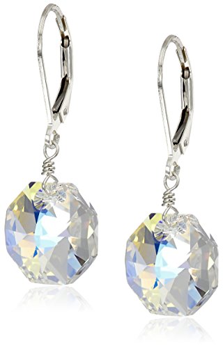 -. Title : Sterling Silver with Swarovski Elements Crystal Aurora Borealis Octagon Earrings