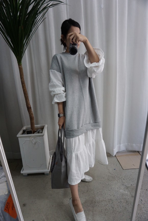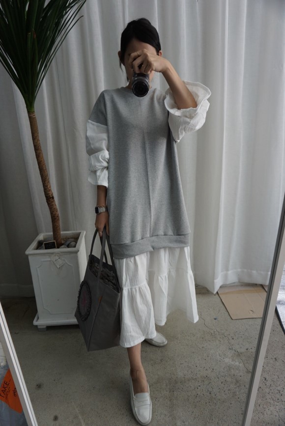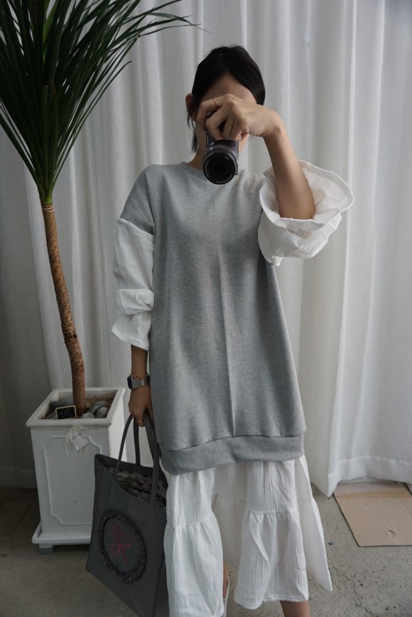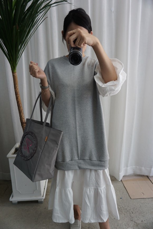 몸통은 맨툼내 소재의 팔과 치마 부분은 요루 원단으로