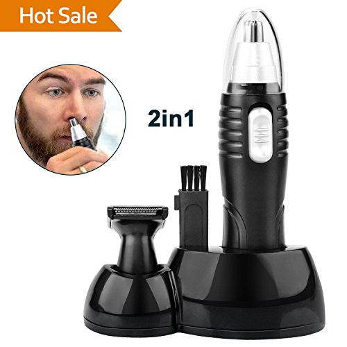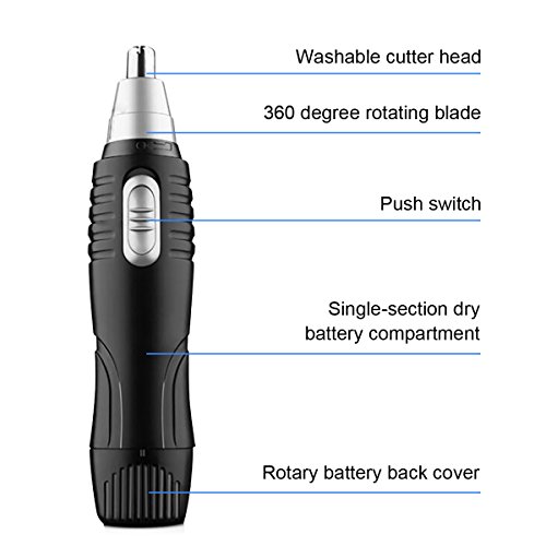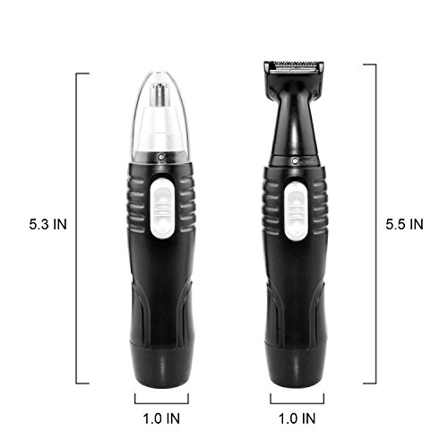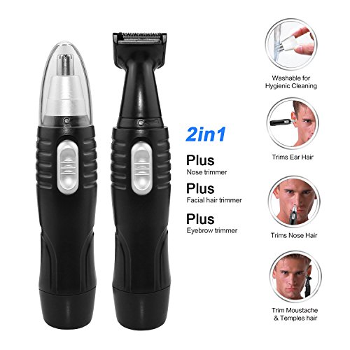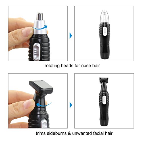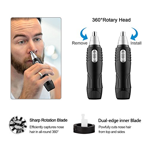 Nose Hair Trimmer, 2 in 1 Interchangeable Trimmer for Nose Ear Hair Sideburns, Wet/Dry Use with Stainless Steel Rotating Blade, Battery-operated, Black