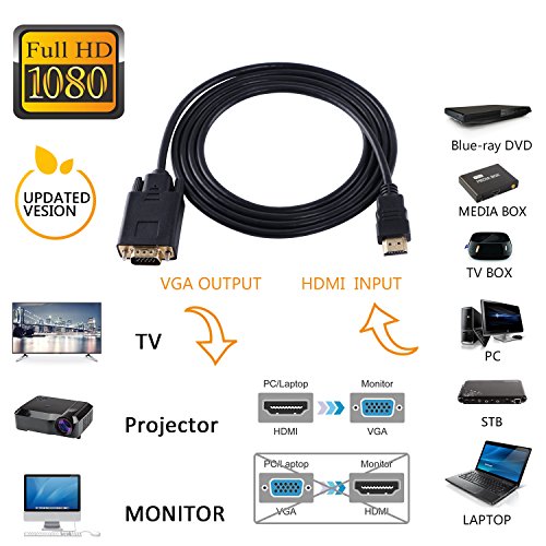 ✔ CONVERTER CABLE - This 6ft HDMI to VGA converter cable is ideal for transmitting and converting digital signal from HDMI devices(Notebook, PC, Laptop, DVD player etc) to analog signal VGA devices(TV, projector, monitor etc).