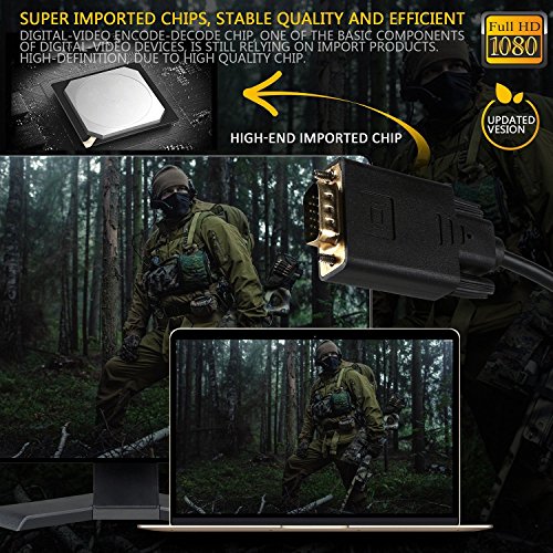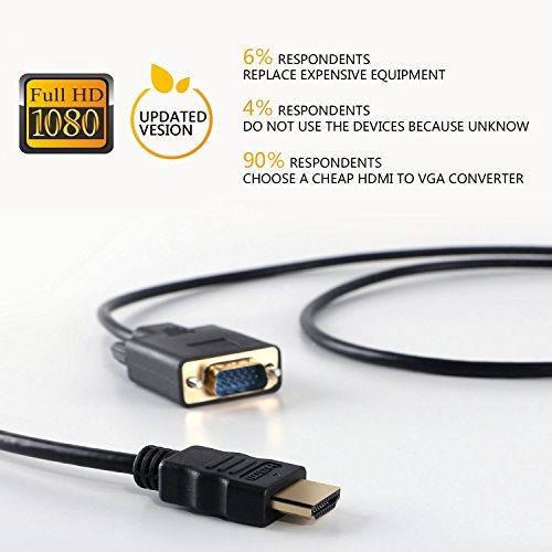 ✔ UTILITY & CONVENIENT - Built-in active convert chip from HDMI to VGA, no other adapter required, no need to set, 6ft/1.8m cable is utility and convenient to convert HDMI signal input to VGA signal output. Plug and play, no driver needed.