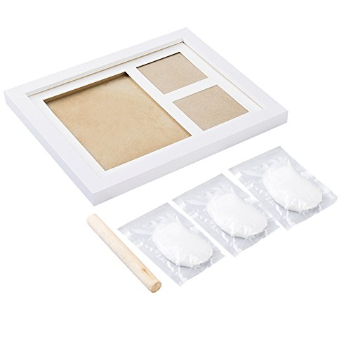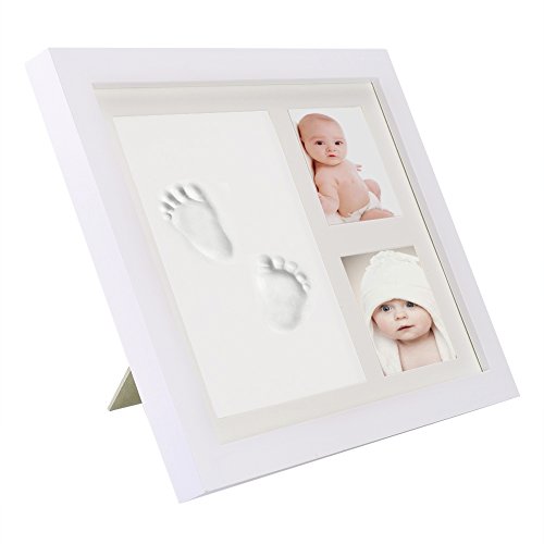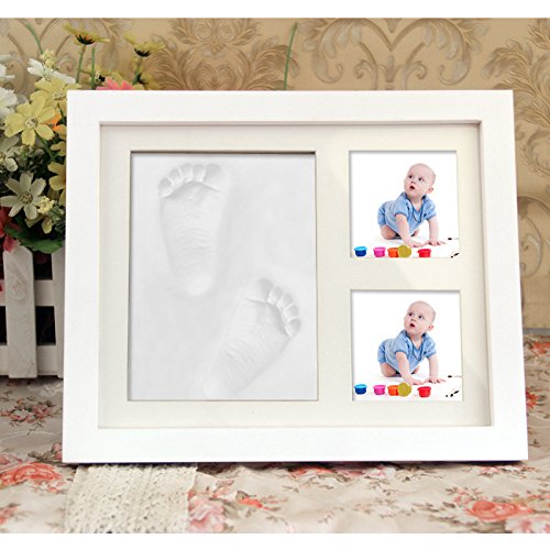 Pretty See Baby Handprint and Footprint Frame Baby Memorial Keepsakes Photo Frame with Premium Clays and Wood Frame, Room Wall or Table Decor, White