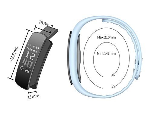 Dimensions and Weight Wristband:216mm Wearable range:31-50mm Upper shell size:34*17mm Screen size:0.96" Box size: 95x150x20mm Product Weight: 17.8g Shipping Weight: 63.6g