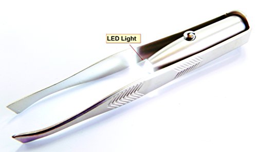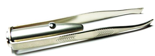 Professional Precision Hypoallergenic Stainless Steel LED Light Eyebrow Tweezer, Slant Tip
