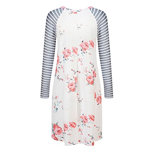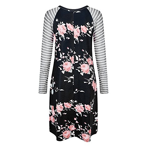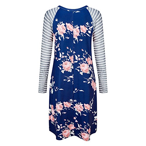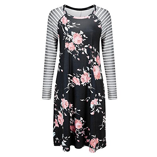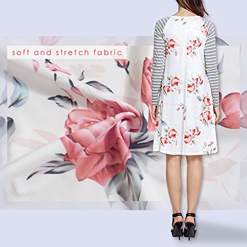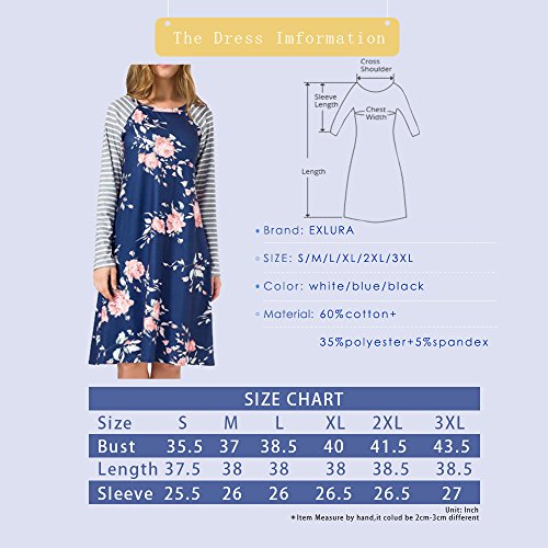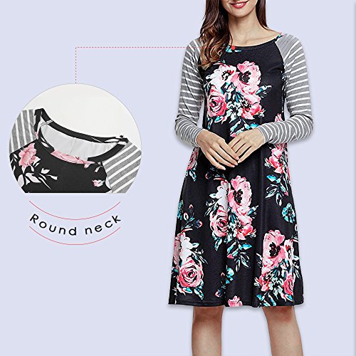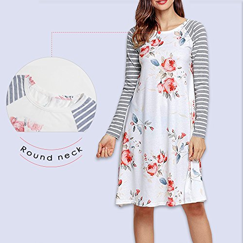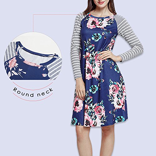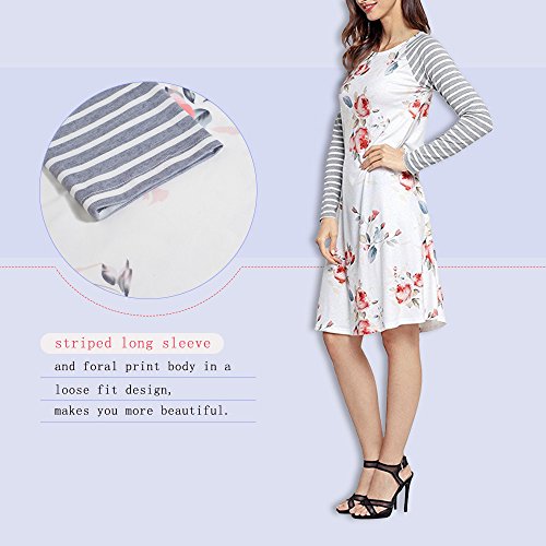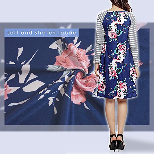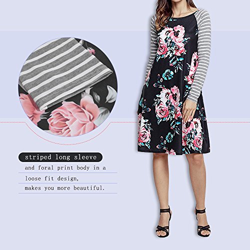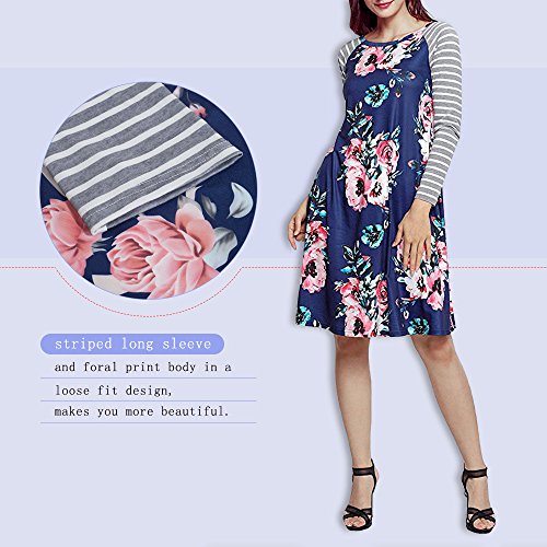 Exlura Women's Floral Print Casual Long Sleeve A-line Loose T-shirt Dresses Knee Length