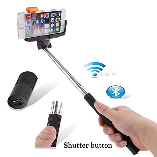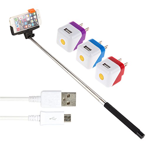 High Quality Self or group Picture Taking Extendable Monopod / Selfie Stick with built-in Bluetooth Wireless Shutter Release Button and Adjustable Phone Holder Packed with (3x) Home Wall Charger Adapter for Apple Mobile Devices: iPhone 6, iPhone 6 Plus, i