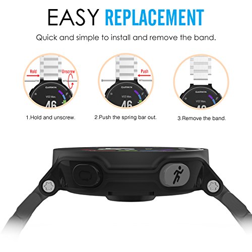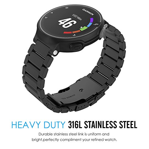 Garmin Forerunner 235 Watch Band, MoKo Universal Stainless Steel Watch Band Strap Bracelet for Garmin Forerunner 235 / 220 / 230 / 620 / 630 Smart Watch, Watch Not Included - BLACK