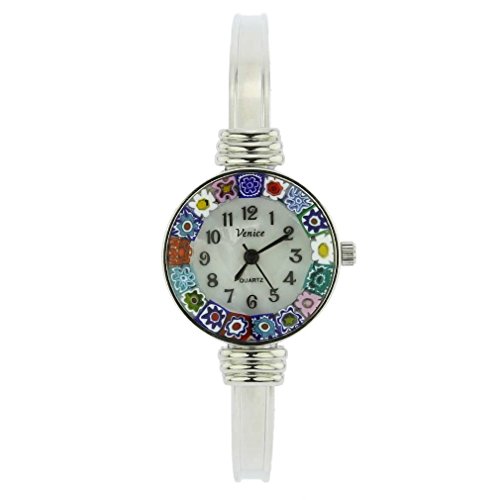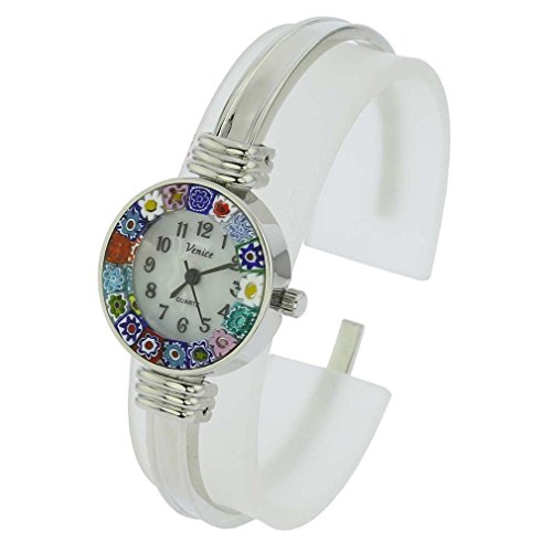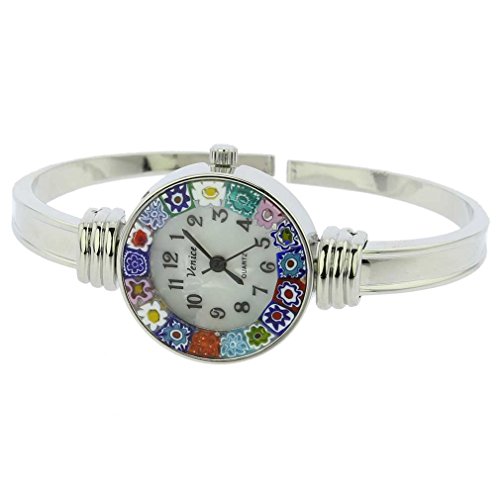 -. Title : GlassOfVenice Murano Glass Millefiori Bangle Watch - Silver