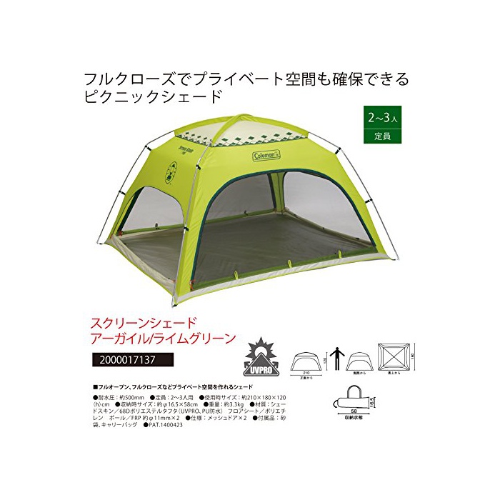 원본상품명: コ?ルマン テント スクリ?ンシェ?ド ア?ガイル/ライムグリ?ン [2~3人用] 2000017137