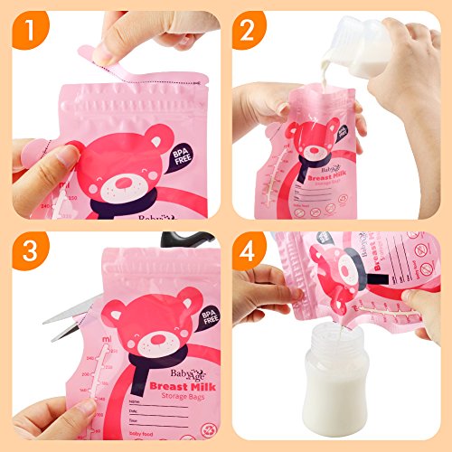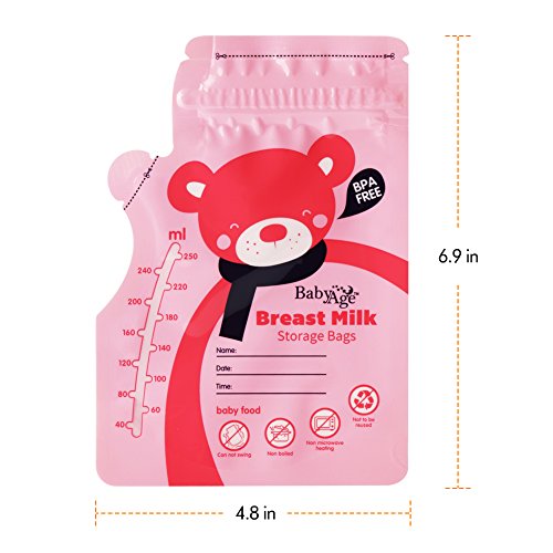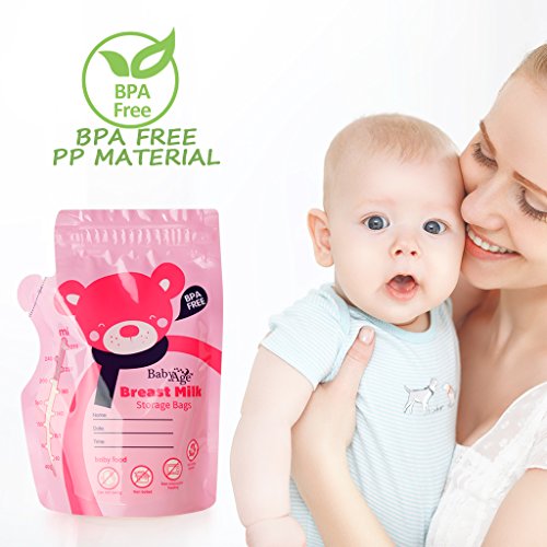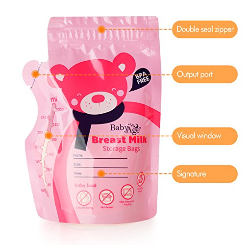 -. Feature : Safety: BPA free and pre-sterilized ready to use. Gamma ray sterilized, ensure the safety of mom and baby. BPA free, food grade materials, nontoxic and without plastic smell, baby do not reject it. / Freezer safe and self-standing: Easily store and freeze breast milk with self-standing bags. Our bags are freezer safe and stand up on their own. / Zip top closure: A convenient zip top closure allows you to easily open and close bags. Resalable bags securely hold 250 milliliters (8oz) of breast milk. / Leakproof: Don't worry about breast milk leaking or spilling. A durable pre-sterilized plastic makes bags leak proof. / Writeable: Date and time can be marked on the bag, never worry about the confusion.