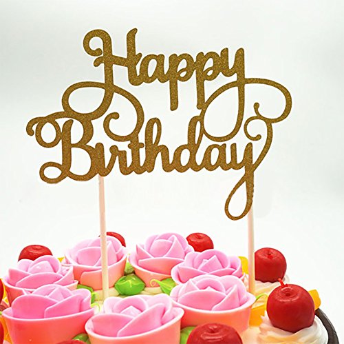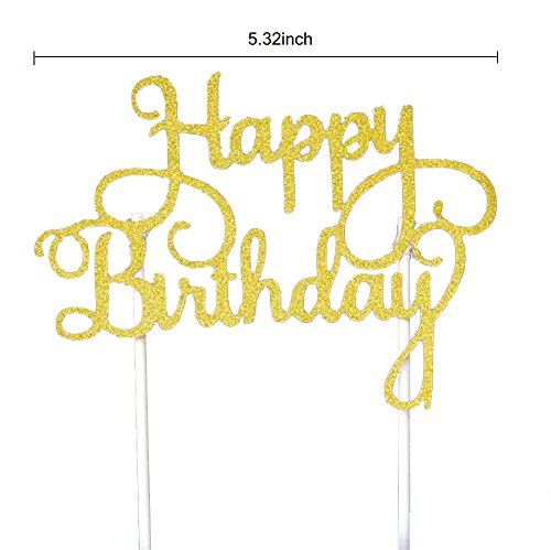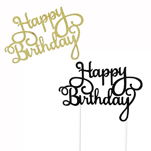 Looching 2pcs Glitter Gold Black Happy Birthday Letters Paper Cake Topper DIY Handmade Decoration Topper
