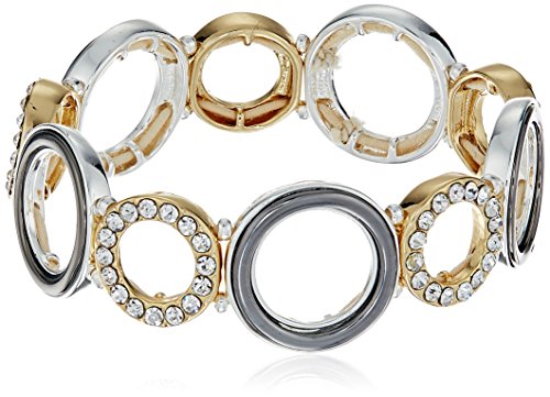 -. Binding : Jewelry -. Brand : Nine West -. Color : Tri-tone -. Department : womens -. Label : Nine West -. Manufacturer : Nine West -. Model : 60444689-Z01-Parent -. MPN : 60444689-Z01-Parent -. PartNumber : 60444689-Z01-Parent -. ProductGroup : Jewelry -. ProductTypeName : FASHIONNECKLACEBRACELETANKLET -. Publisher : Nine West -. Studio : Nine West -. Title : Nine West "Ring Around" Stretch Bracelet